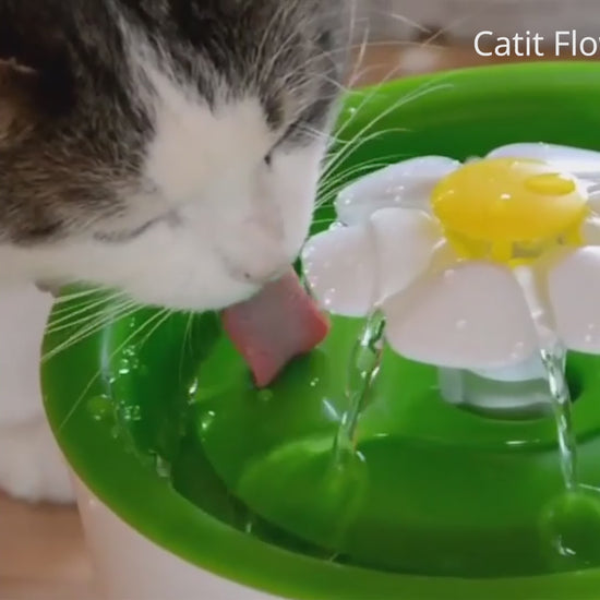 Im Gegensatz zu Schalen befördert der Blumentrinkbrunnen von Catit nur gefiltertes, fließendes Wasser an die Oberfläche. So wird verhindert, dass Ihre Katze verunreinigtes Wasser trinkt.