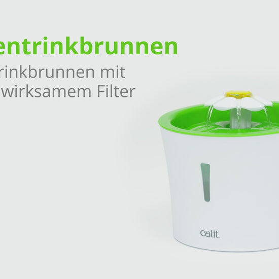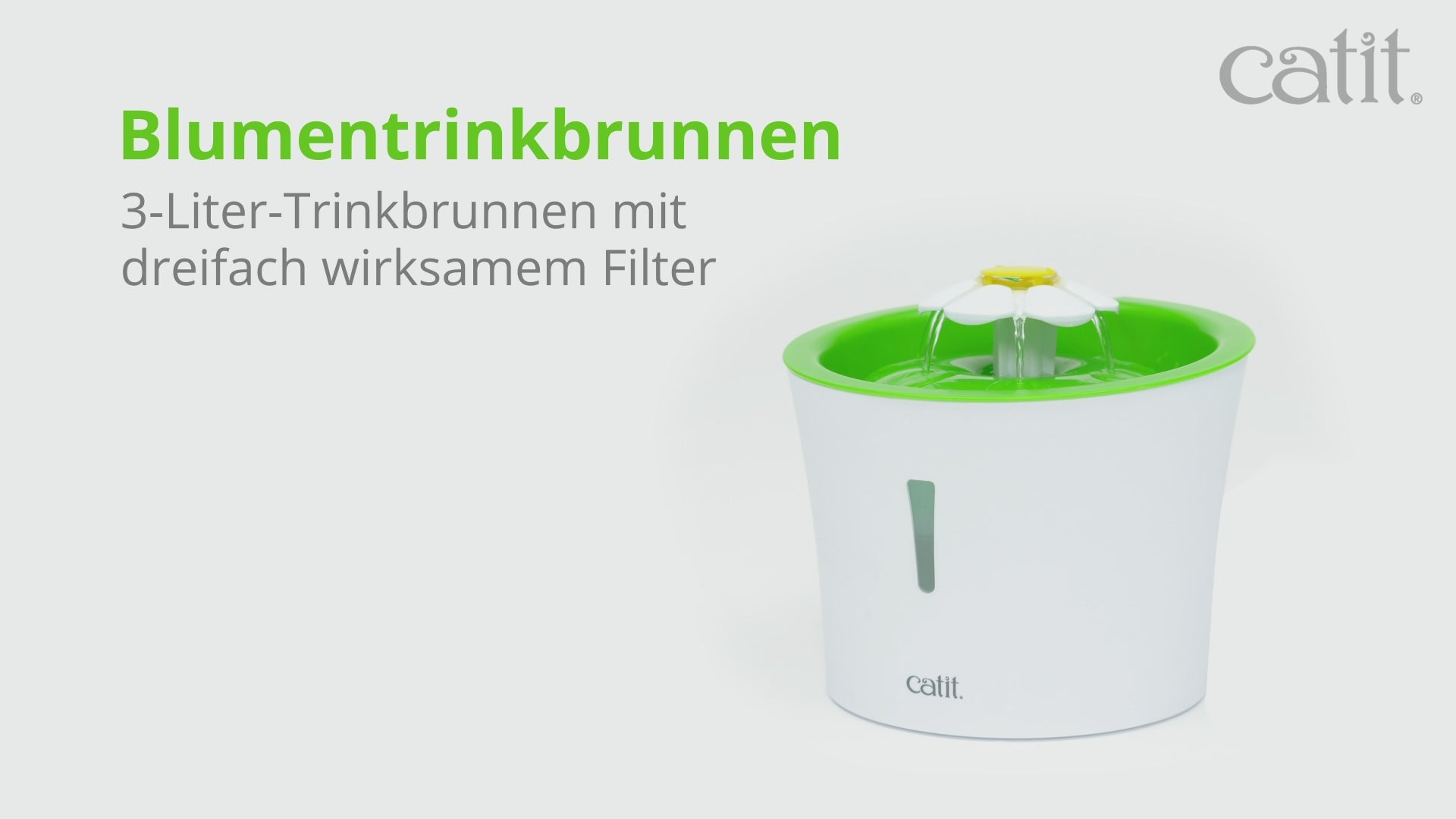 Der Blumentrinkbrunnen ist nur zur Verwendung mit von Catit zertifizierten Filtern vorgesehen. Die Dreifachfunktionsfilter von Catit garantieren eine sichere und optimale Reinigung des Trinkwassers für Ihre Katze für ca. 30 Tage. Nach dieser Zeit lässt die Filterfunktion immer mehr nach und es können sich Bakterien im Reservoir des Trinkbrunnens ansammeln. Ersetzen Sie Ihren Catit-Dreifachfunktionsfilter daher mindestens einmal im Monat, wenn der Filter sichtbar verschmutzt ist.