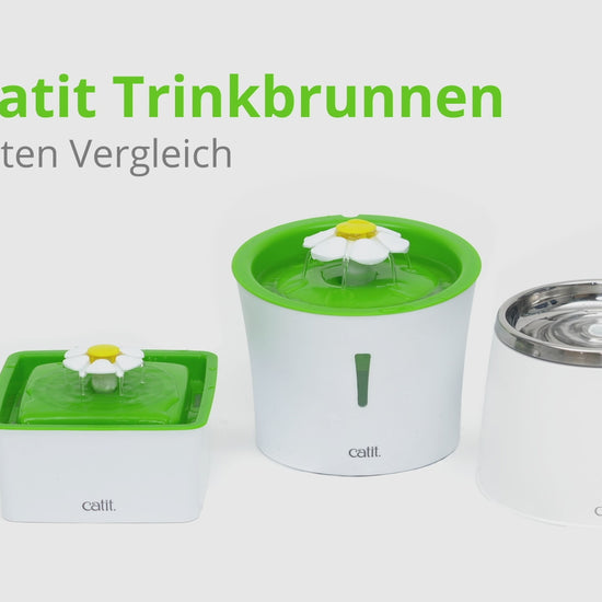 Da Katzen beim Trinken sehr wählerisch sind, hat Catit den Blumentrinkbrunnen mit 3 verschiedenen Einstellungen entwickelt: sanfter Wasserfluss, sprudelndes Wasser oder ruhiger Fluss.