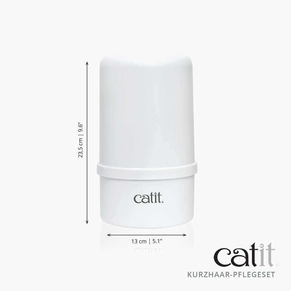 Das Catit Kurzhaar-Pflegeset enthält alle Pflegewerkzeuge, die Sie für die Pflege eines Fells einer Katze mit kurzen Haaren benötigen. Aufrechte Aufbewahrung zum Schutz der Zinken.