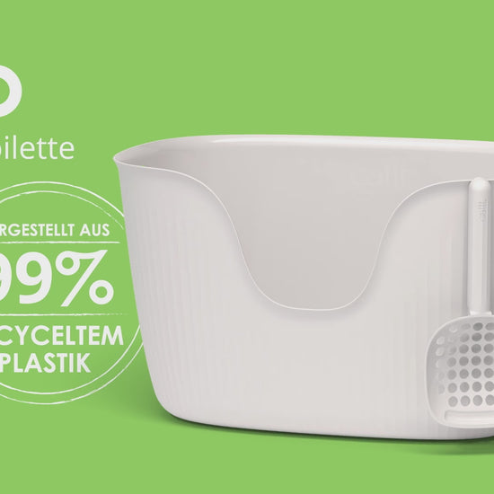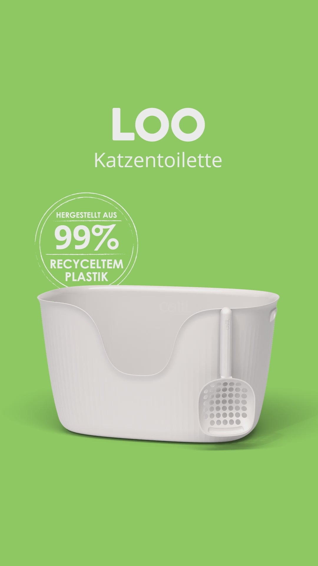 Die Catit Loo Katzentoilette ist eine stylische und umweltfreundliche Lösung für die Bedürfnisse deiner Katze. Sie besteht zu 99 % aus recyceltem Plastik (PCR) und hilft so, Plastikmüll zu reduzieren, während sie deiner Katze einen angenehmen und komfortablen Platz für ihr „Geschäft“ bietet. Das ergonomisch geformte Design verfügt über glatte, hohe Wände, die unten abgerundet sind, was die Reinigung erleichtert. Außerdem trägt der erhöhte Eingang dazu bei, das Verteilen von Streu um die Katzentoilette herum zu minimieren. Mit der passenden Schaufel macht die Catit Loo Katzentoilette die Pflege deiner Katze einfach und nachhaltig.