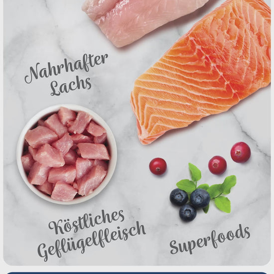 Getreidefreies Premium-Trockenfutter mit Geflügelfleisch, nahrhaftem Lachs und Weißfisch