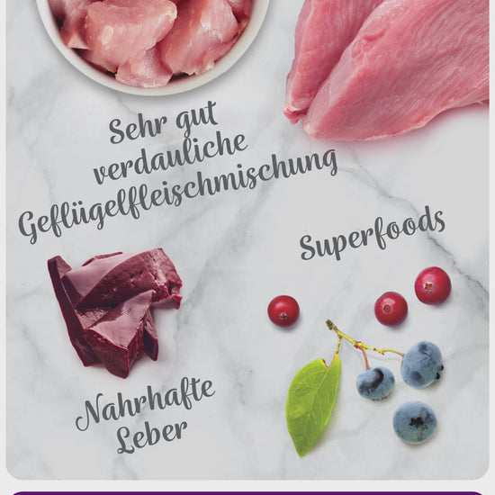 Unwiderstehliches, sehr leicht verdauliches Futter mit Geflügelfleisch