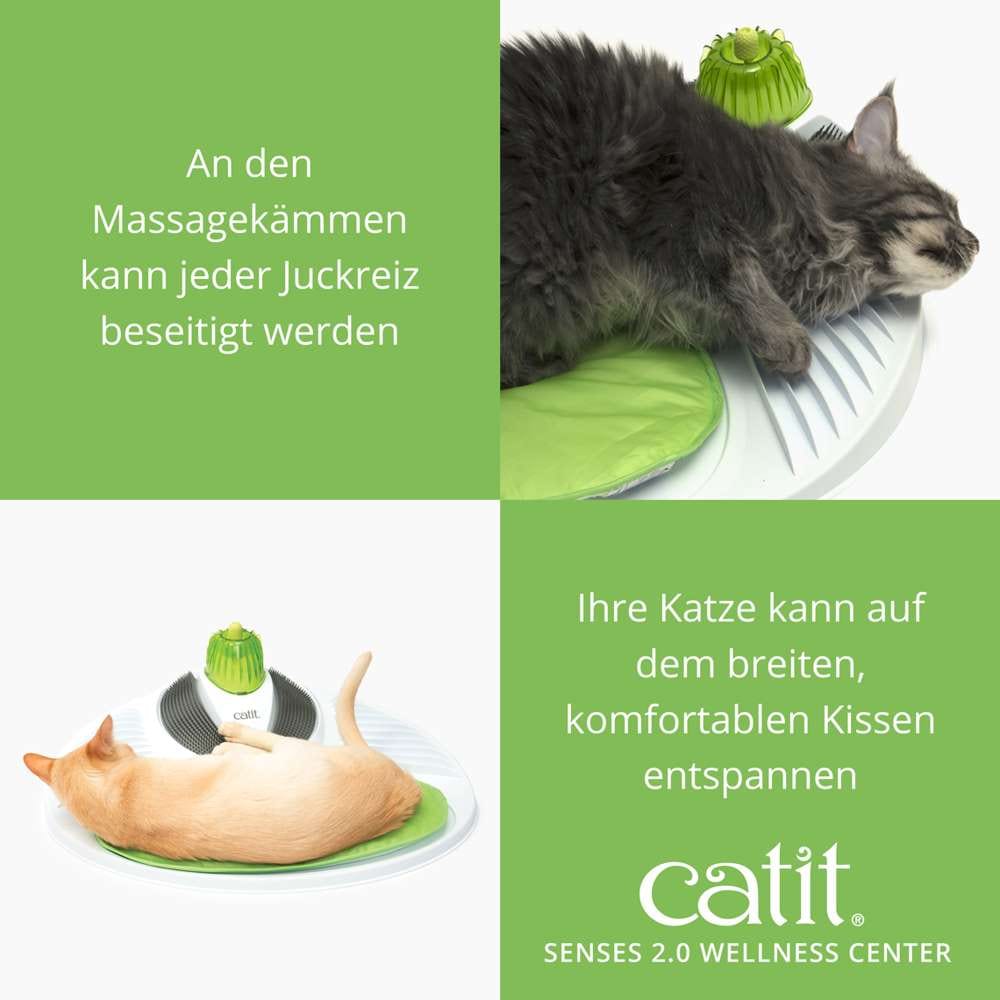 Das Catit Senses 2.0 Wellness Center ist ein Plätzchen, an dem sich deine Katze rundum entspannen kann. Es bietet verschieden geformte Bürsten, Oberflächenstrukturen und Massagekämme, die der Katze die Möglichkeit geben, sich selbst zu pflegen, zu massieren und zu verwöhnen. Die Komponenten sind von allen Seiten leicht zugänglich, um den individuellen Vorlieben und Gewohnheiten eines jeden Tieres zu entsprechen.